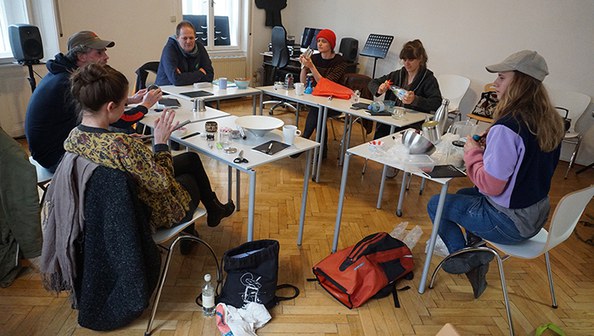 beim sound-experimentieren: livia heiß, stephan tikatsch, christof kurzmann, peta klotzberg,