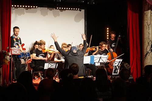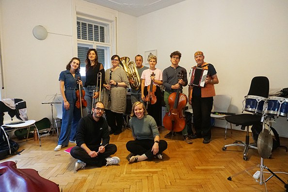 das pataphysische orchester bei einer probe in der schule für dichtung