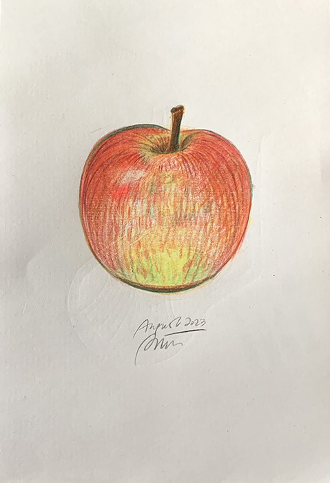 © teresa präauer: "Apfel, August 2023" (original-buntstiftszeichnung für die sfd)